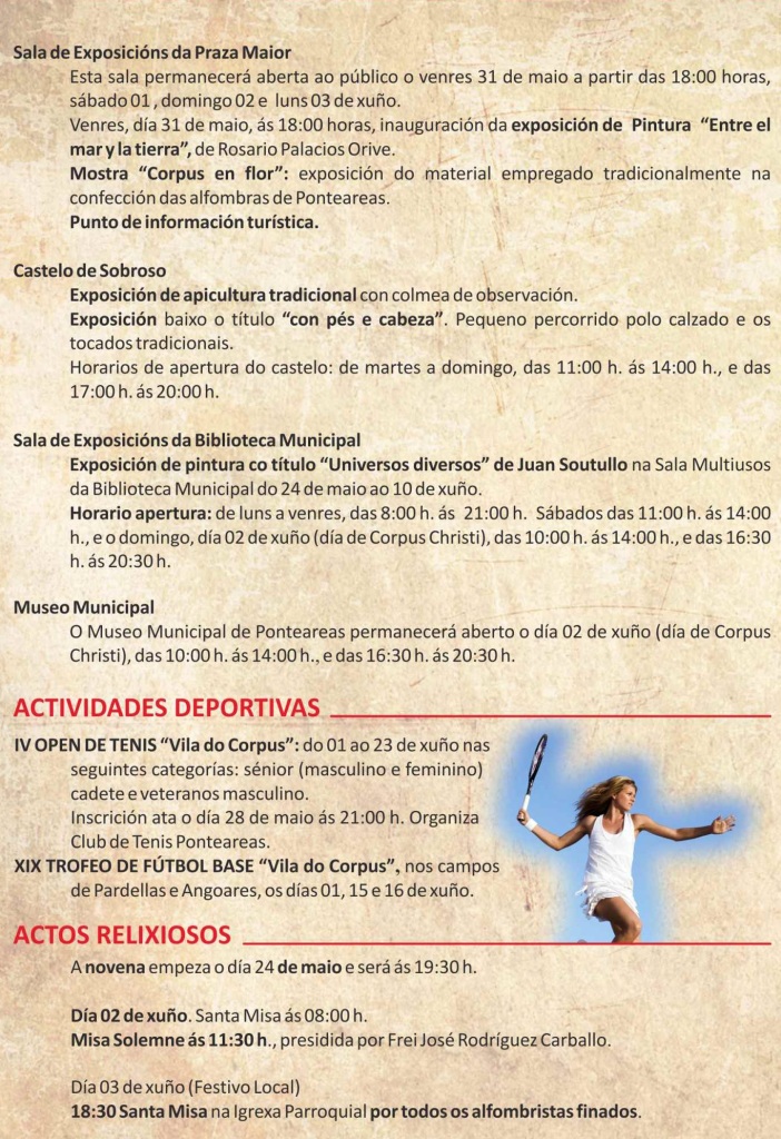El programa del 2013, incluirá una sala de exposiciones donde se podrán "tocar" los elementos utilizados para la confección de las alfombras (productos vegetales y florales), así como un stand para "disfrutar de los aromas y los sabores del Corpus".